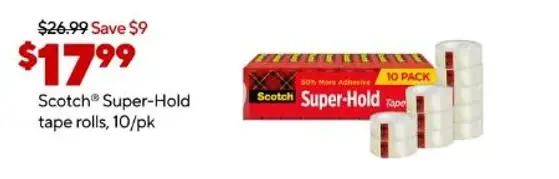 Hurry in and save! Shop in store and get $17.99 Scotch® Super-Hold tape rolls,10/pk.